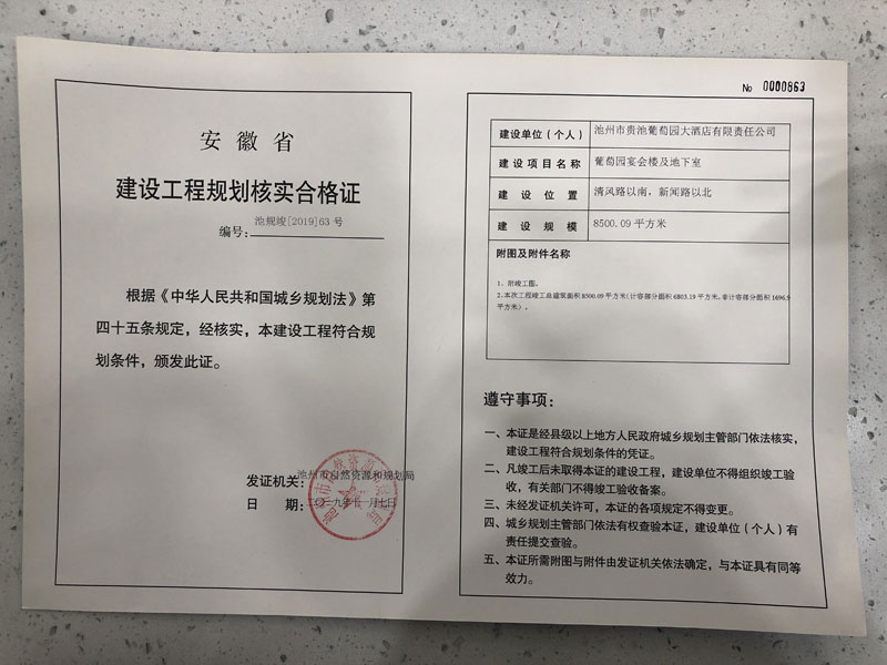 建设单位:池州市贵池葡萄园大酒店有限责任公司