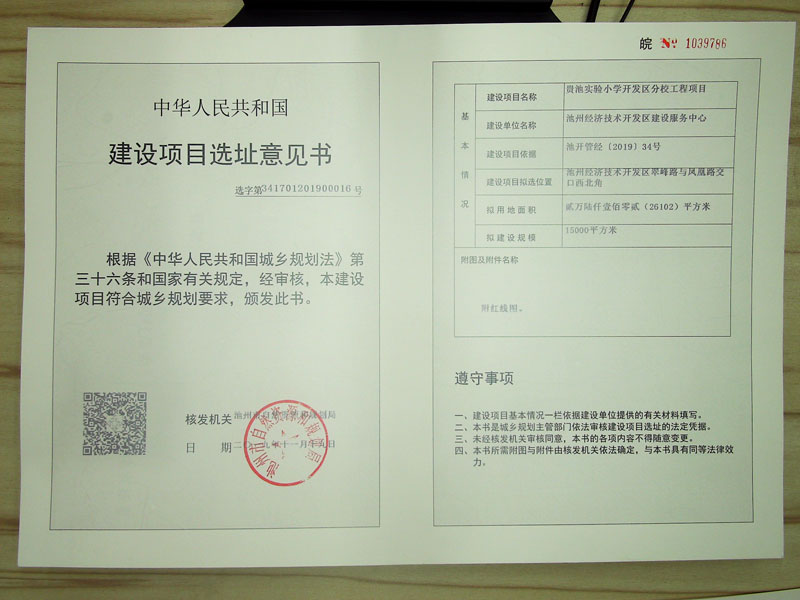 建设项目:贵池实验小学开发区分校工程项目