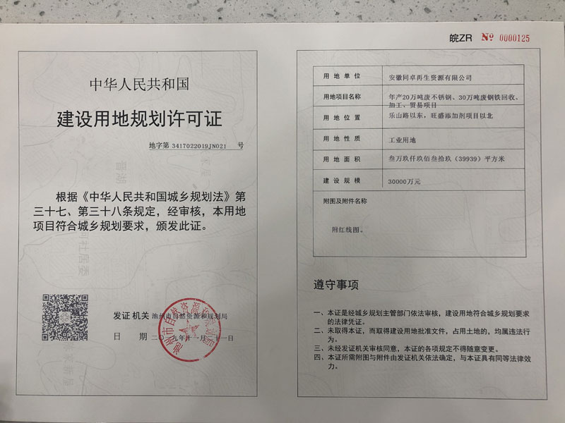 用地单位:安徽同卓再生资源有限公司