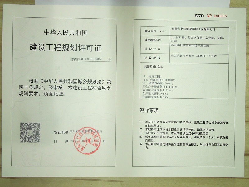 建设单位:安徽省中达桥梁钢构工程有限公司