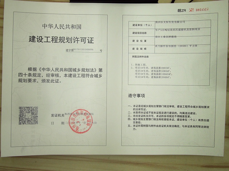 建设项目:年产5万吨轻质药用碳酸钙及原料项目