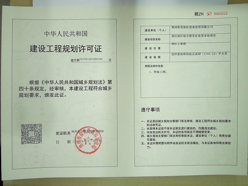 发证编号:建字第341701201900102号