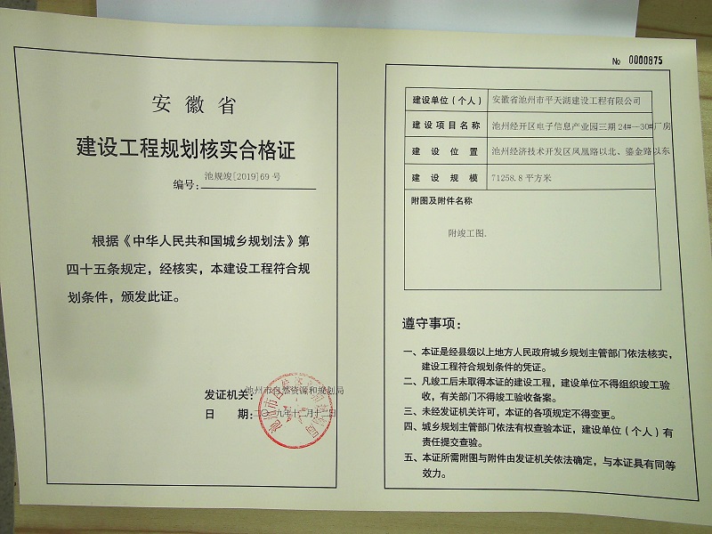 建设单位:安徽省池州市平天湖建设工程有限公司