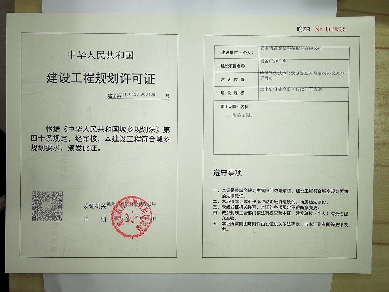 发证编号:建字第341701201900105号