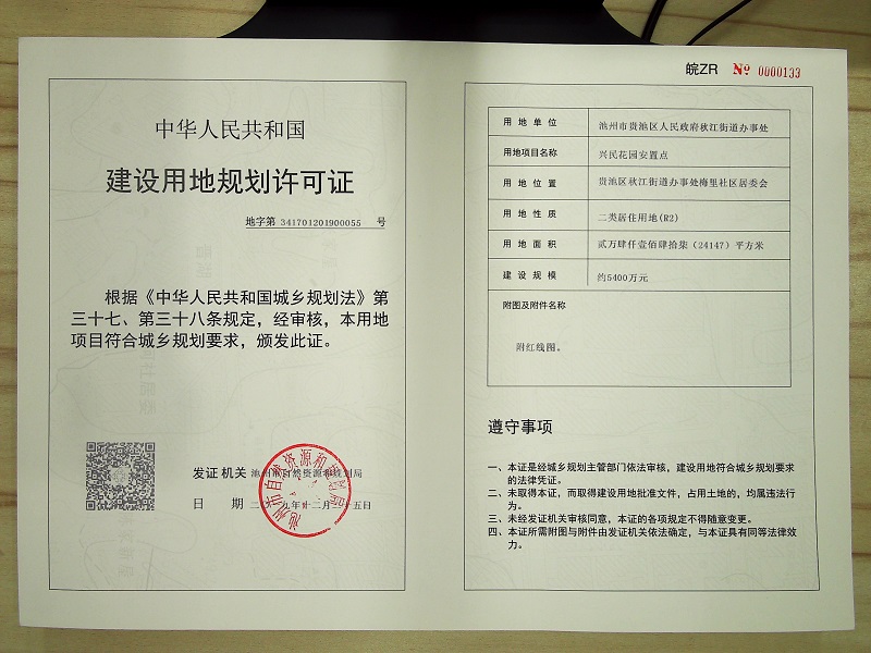 用地单位:池州市贵池区人民政府秋江街道办事处