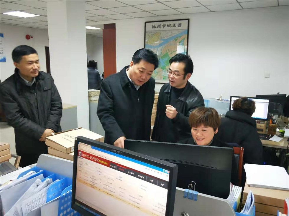 1月7日,省自然资源厅第八督查组赴市不动产登记中心检查指导不动产登记工作。市自然资源和规划局党组书记、局长胡军保陪同督查。