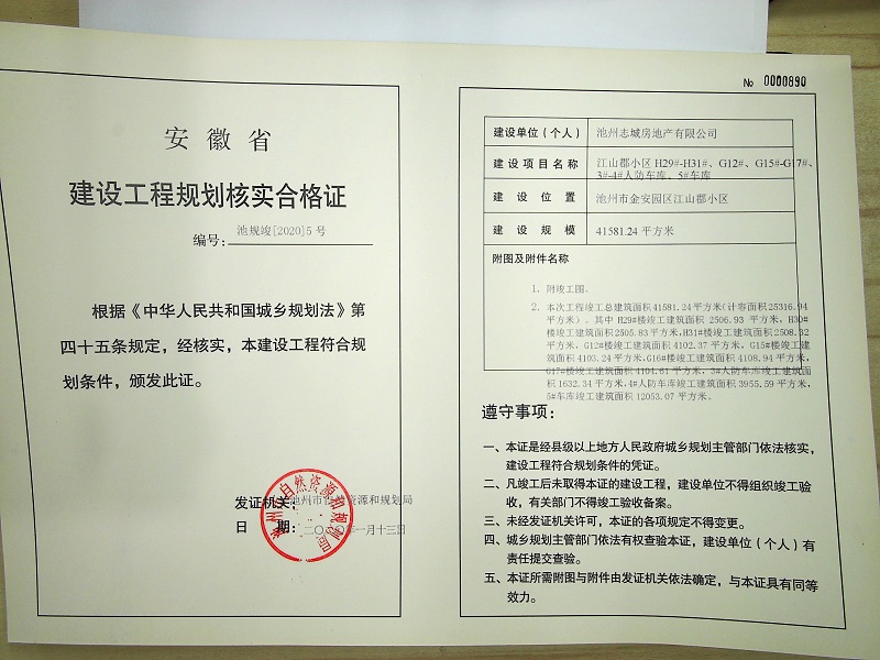 发证编号:池规竣[2020]5号