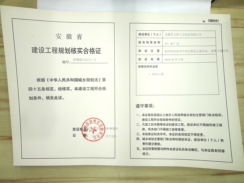 建设单位:安徽省五洲工艺制品有限公司