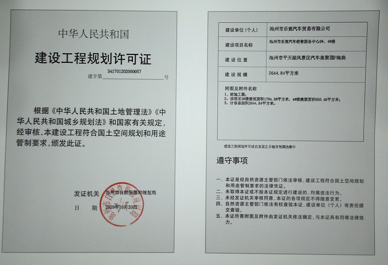 建设单位:池州市乐宸汽车贸易有限公司
