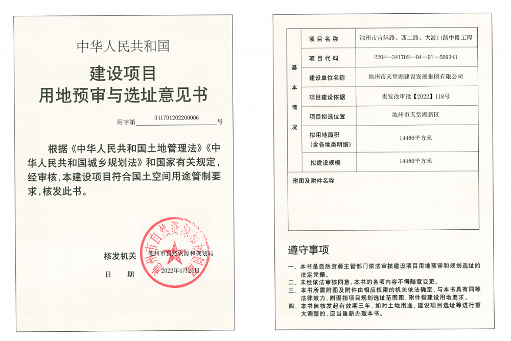 项目名称:池州市官港路、西二路、大渡口路中段工程