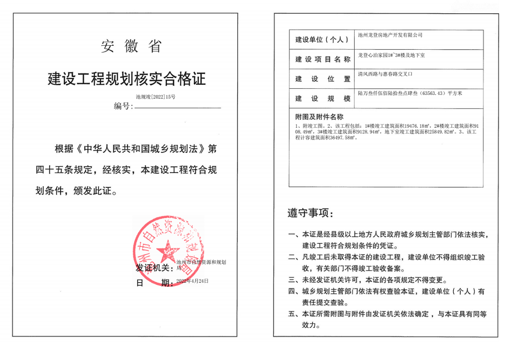 发证编号:池规竣[2022]15号
