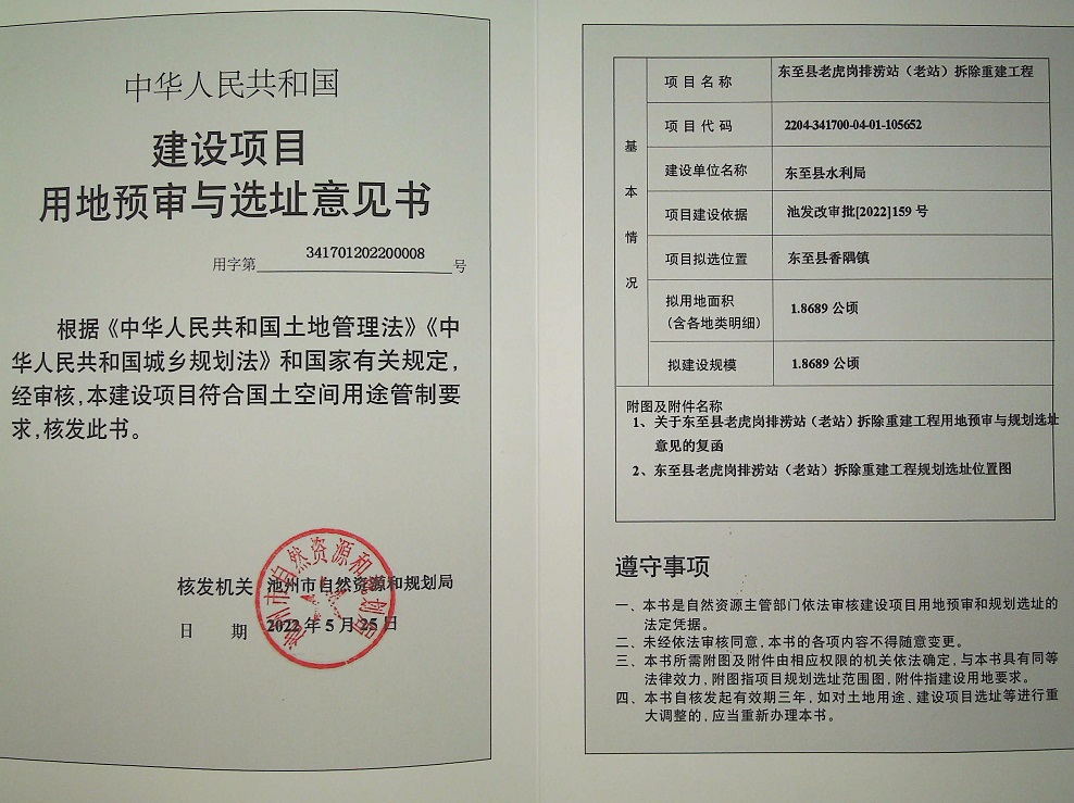 项目名称:东至县老虎岗排涝站(老站)拆除重建工程