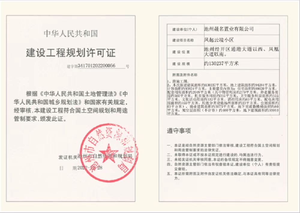 凤起云境小区《建设工程规划许可证》批后公布