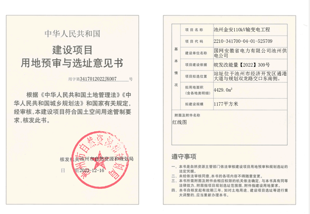 池州金安110kV输变电工程《建设项目用地预审与选址意见书》批后公布