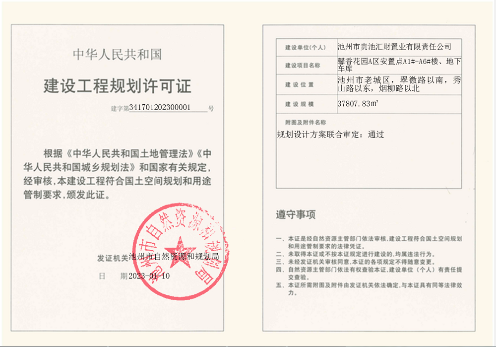 馨香花园A区安置点A1#-A6#楼、地下车库《建设工程规划许可证》批后公布