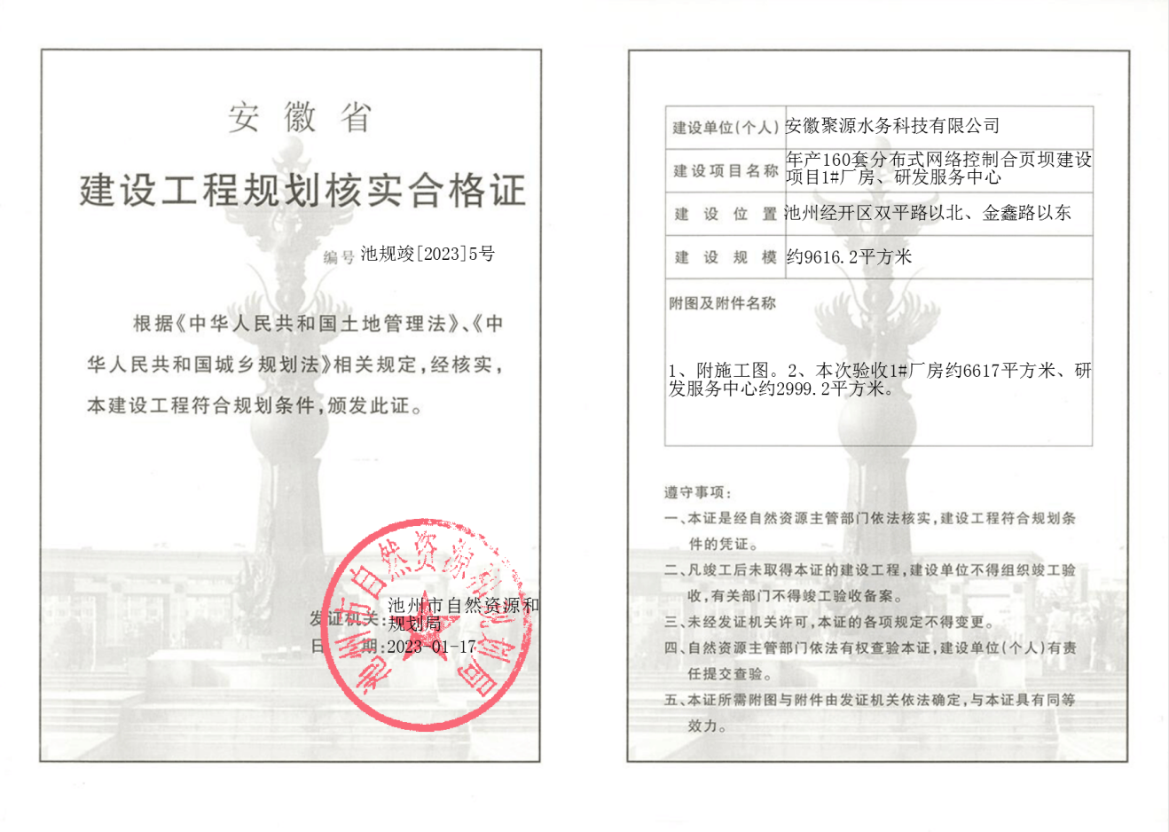发证编号:池规竣[2023]5号