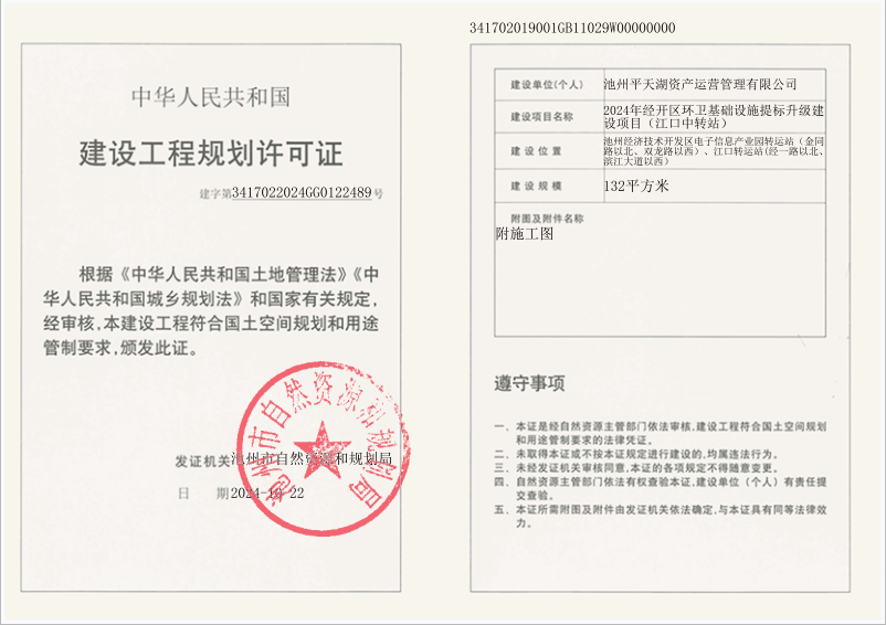 2024年经开区环卫基础设施提标升级建设项目(江口中转站)《建设工程规划许可证》批后公布