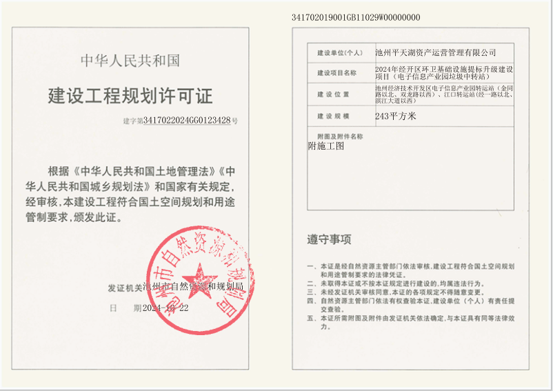 2024年经开区环卫基础设施提标升级建设项目(电子信息产业园垃圾中转站)《建设工程规划许可证》批后公布