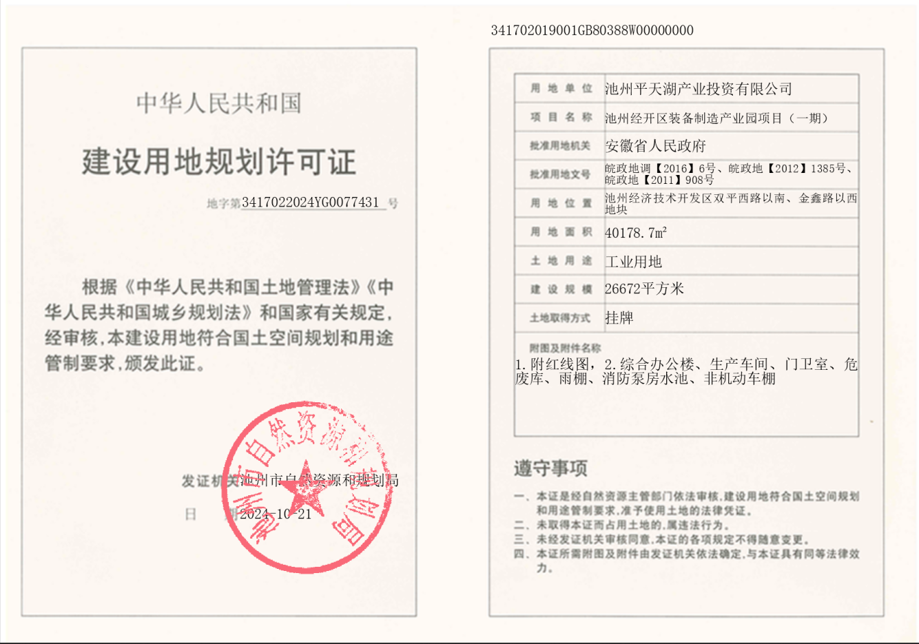 池州经开区装备制造产业园项目(一期)《建设用地规划许可证》批后公布
