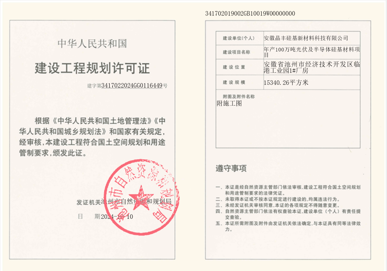 年产100万吨光伏及半导体硅基材料项目《建设工程规划许可证》批后公布
