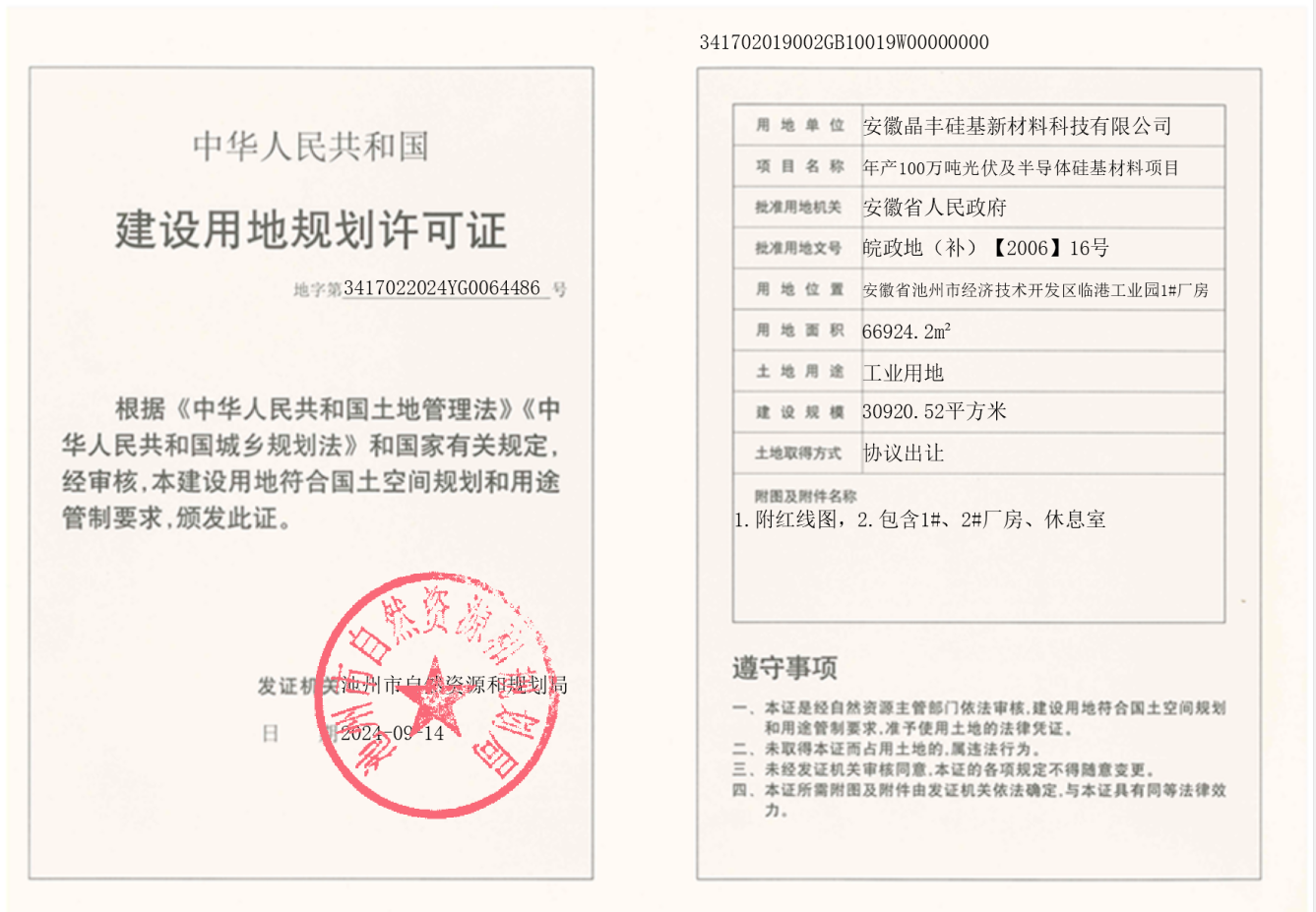 用地单位:安徽晶丰硅基新材料科技有限公司
