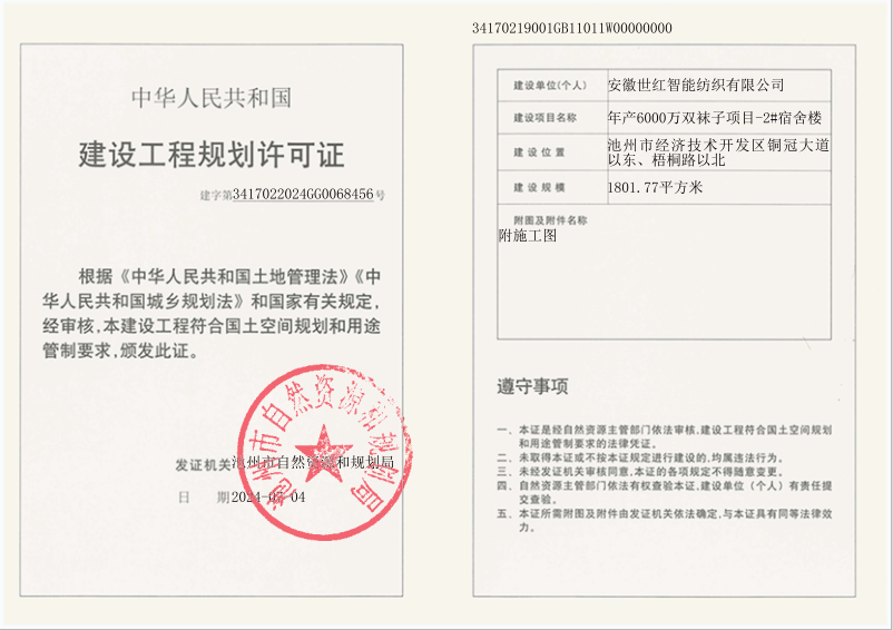 年产6000万双袜子项目-2#宿舍楼《建设工程规划许可证》批后公布