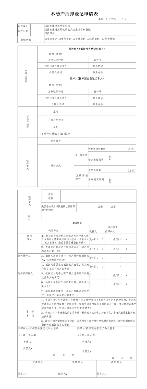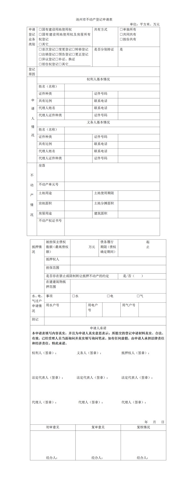 (1)池州市不动产登记抵押申请表(含主债权合同和抵押合同)