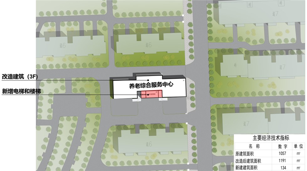 改造后项目总建筑面积1191平方米,其中新增建筑面积134平方米。