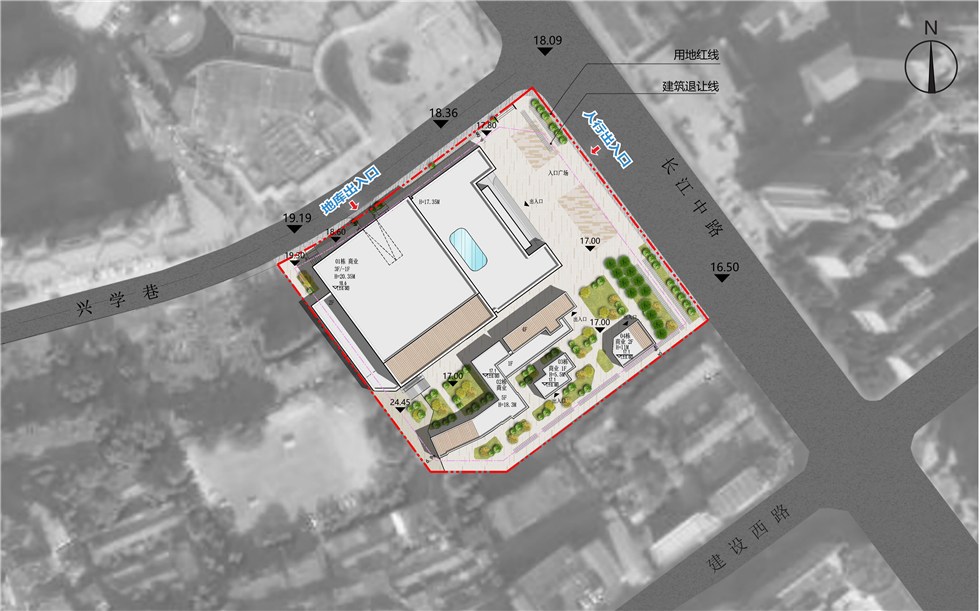 项目位于中心城区长江中路以西、兴学巷以南,用地面积约18277平方米(约27.4亩)。项目规划总建筑面积约27045平方米(计容建筑面积约23549平方米),容积率约1.29,建筑密度约45.5%,绿地率约10%;配套机动车位93个,非机动车停车位347个。