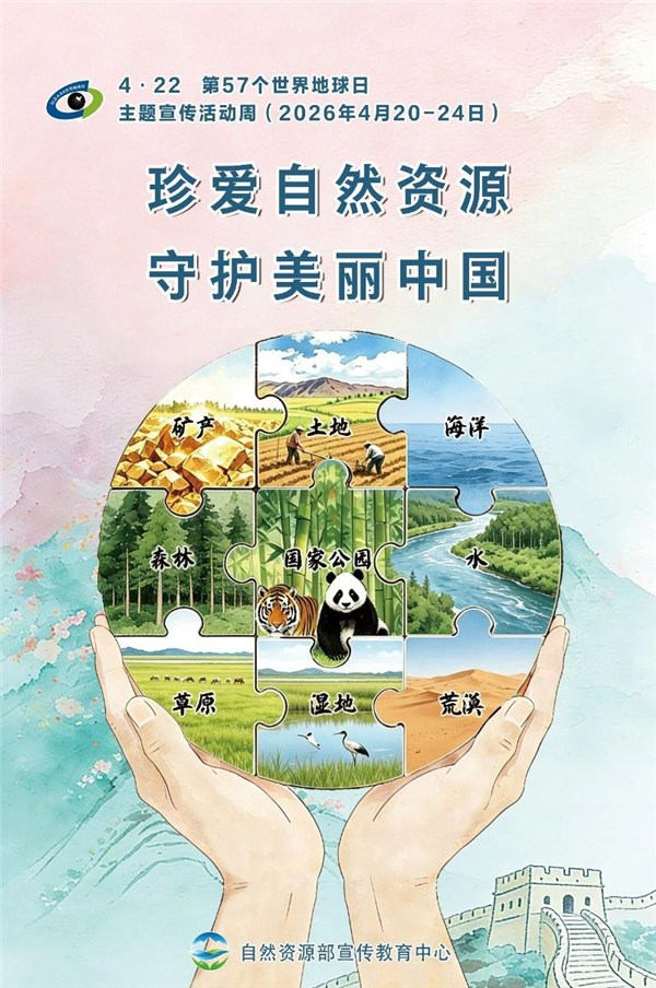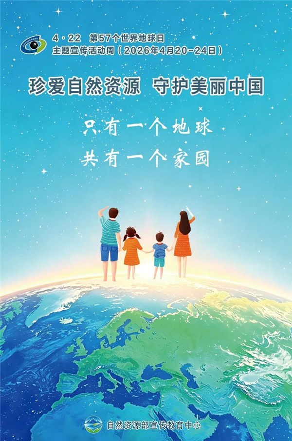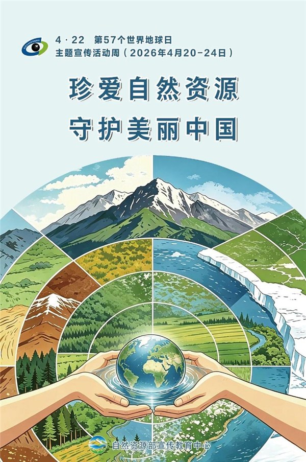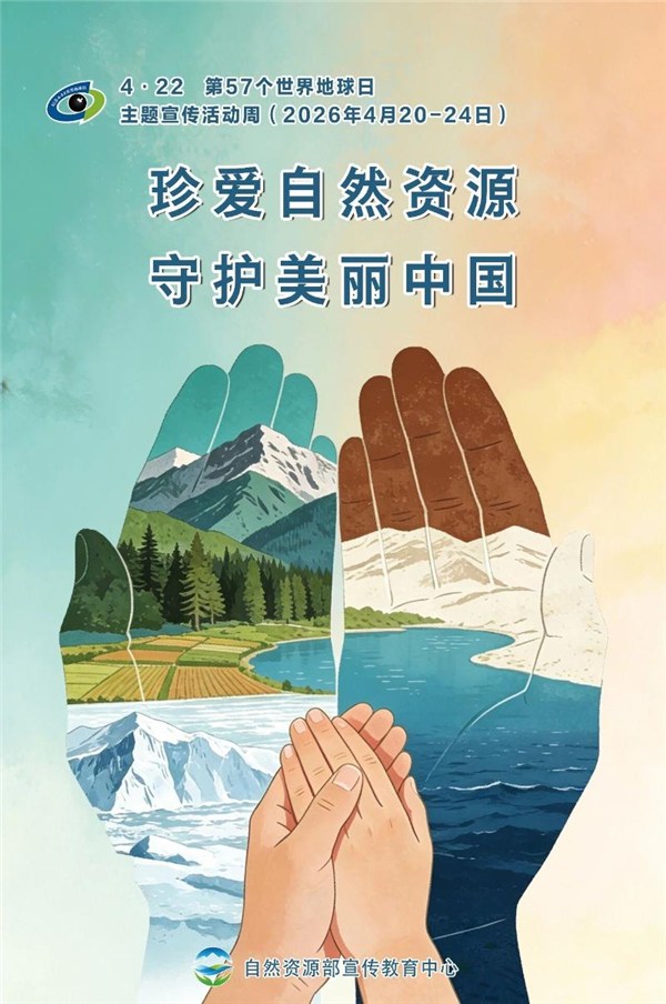 2026年4月22日是第57个世界地球日,活动主题是“珍爱自然资源 守护美丽中国”。自然资源部宣传教育中心设计制作了主题海报,欢迎下载使用。