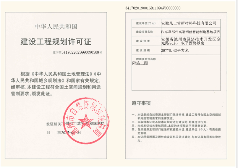 汽车零部件高端钢丝智能制造基地项目《建设工程规划许可证》批后公布