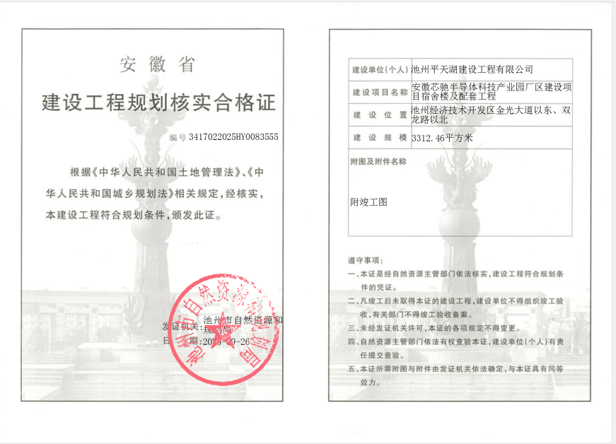 安徽芯驰半导体科技产业园厂区建设项目宿舍楼及配套工程《建设工程规划核实合格证》批后公布