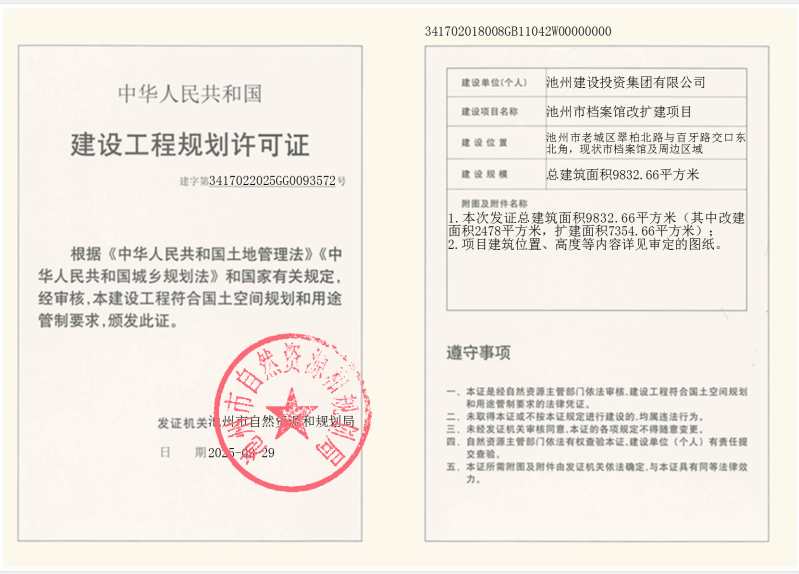 池州市档案馆改扩建项目《建设工程规划许可证》批后公布