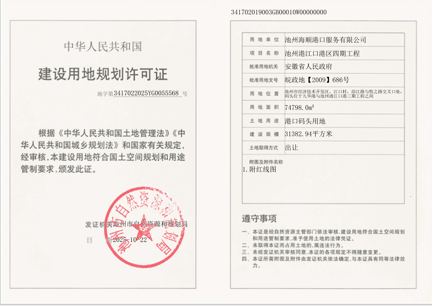 池州港江口港区四期工程《建设用地规划许可证》批后公布