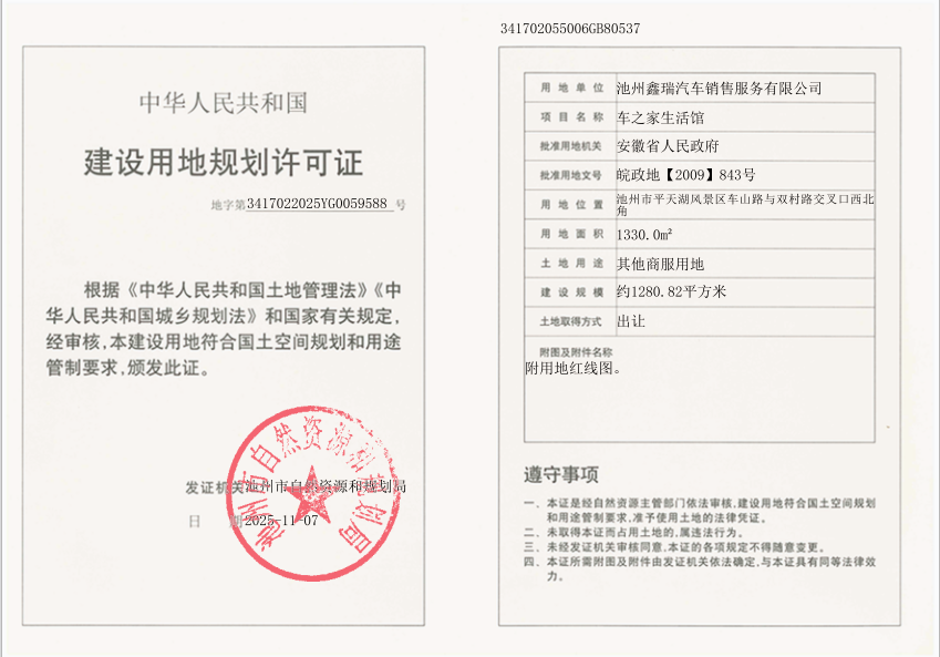 用地单位:池州鑫瑞汽车销售服务有限公司