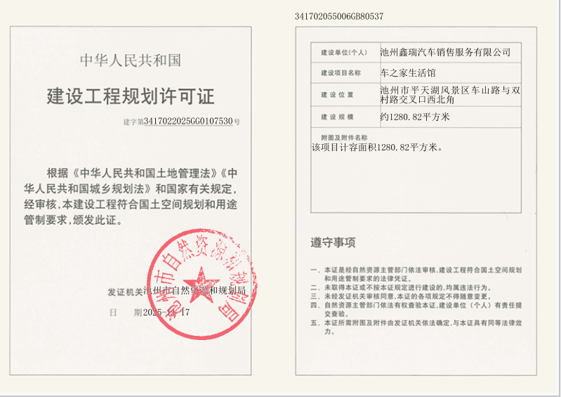 建设单位:池州鑫瑞汽车销售服务有限公司