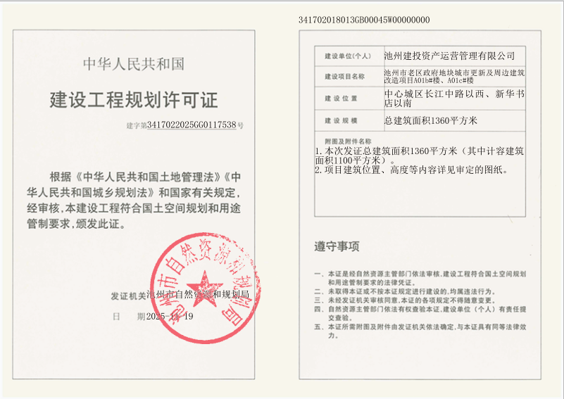 池州市老区政府地块城市更新及周边建筑改造项目A01b#楼、A01c#楼《建设工程规划许可证》批后公布