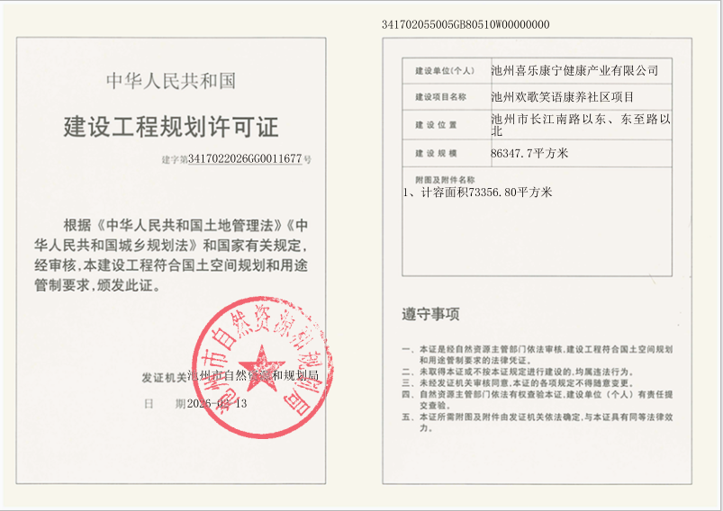 池州欢歌笑语康养社区项目《建设工程规划许可证》批后公布