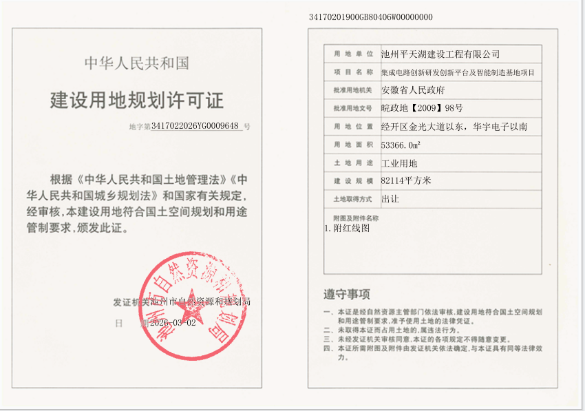 集成电路创新研发创新平台及智能制造基地项目《建设用地规划许可证》批后公布